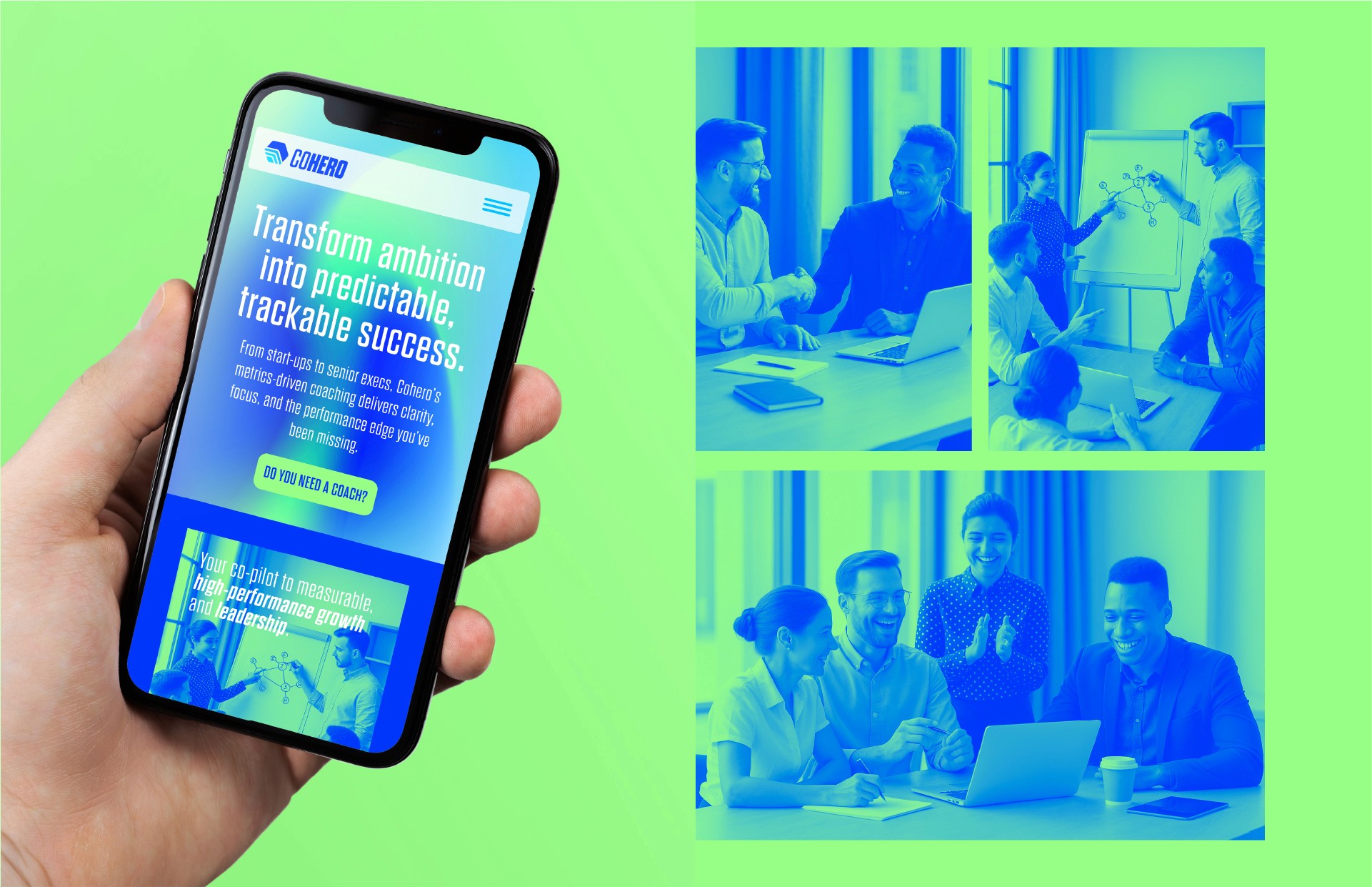 Cohero’s coaching programmes deliver measurable performance gains, yet its visual presence felt generic and inconsistent. Prospective clients struggled to connect the firm’s premium, data‑driven approach with a logo and colour scheme that lacked distinction, and internal teams had no clear guidelines for presenting slide decks, proposals, or social content. The brand needed to project authority and energy in equal measure—instantly signalling that Cohero is the trusted partner‑in‑your‑corner for ambitious founders and executives.